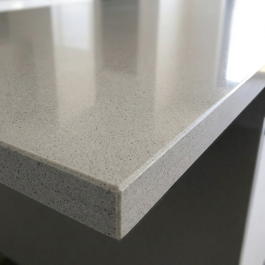 Een prachtig lichtgrijs composiet blad voor binnen, met een moderne look vervaardigd uit hoogwaardig gepolijst (glanzend) marmercomposiet. Een mooie lichte grijstint met een subtiel (donker) spikkelaccent: Sfeervol & toegankelijk. Lees meer
