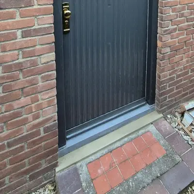 Met een buitendeur dorpel van Belgisch hardsteen zorgt u, naast een mooie afwerking van uw gevel, voor een optimale bescherming en afsluiting tegen water. Daarnaast worden ook uw kozijnen beschermd tegen vocht. Deze schuine dorpel is geschikt voor uw buitendeur, voordeur, achterdeur, terrasdeur, tuindeur & garagedeur / garagepoort en voorkomt u dat water en vocht - vanaf de deur - in de onderliggende spouwmuur, of andere onderliggende constructie, terecht komt. De afgeschuinde / aflopende variant - ook wel aangeduid als lekdorpel - is de meest gebruikte buitendeur / voordeur dorpel variant.