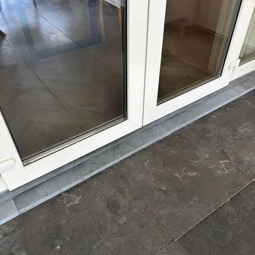 Buitendorpel vlak - Belgisch hardsteen - geschuurd (mat) - 2 cm dik - op maat - deurdorpel / onderdorpel / waterkering (t.b.v. buitendeur / voordeur) van arduin (blauwsteen)