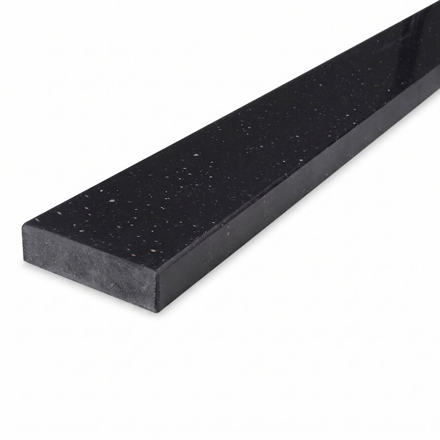 Deze marmercomposiet onderdorpel wordt in eigen natuursteen zagerij voor u op maat gezaagd en afgewerkt, door ervaren vakmannen, met zorg & liefde voor het vak. Standaard wordt uw buitendorpel 'recht gezaagd' en worden de bovenzijde en beide lange zijkanten netjes afgewerkt, dat wilt zeggen gepolijst + afgewerkt met een facetrandje. Deze mooie donkere natuursteen (look) (renovatie)dorpel van marmer composiet is - naast bijzonder praktisch - ook een bijzonder stijlvolle natuursteen deurdorpel, ideaal als karaktervol accent voor uw gevel(aanblik)!