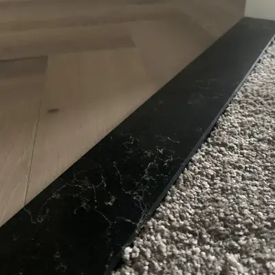 Dorpel binnendeur marmerlook zwart - kwartscomposiet - gepolijst (glans) - 2 cm dik - op maat - glanzende zwarte marmer imitatie van quarts / quartz composiet stofdorpel / deurdorpel