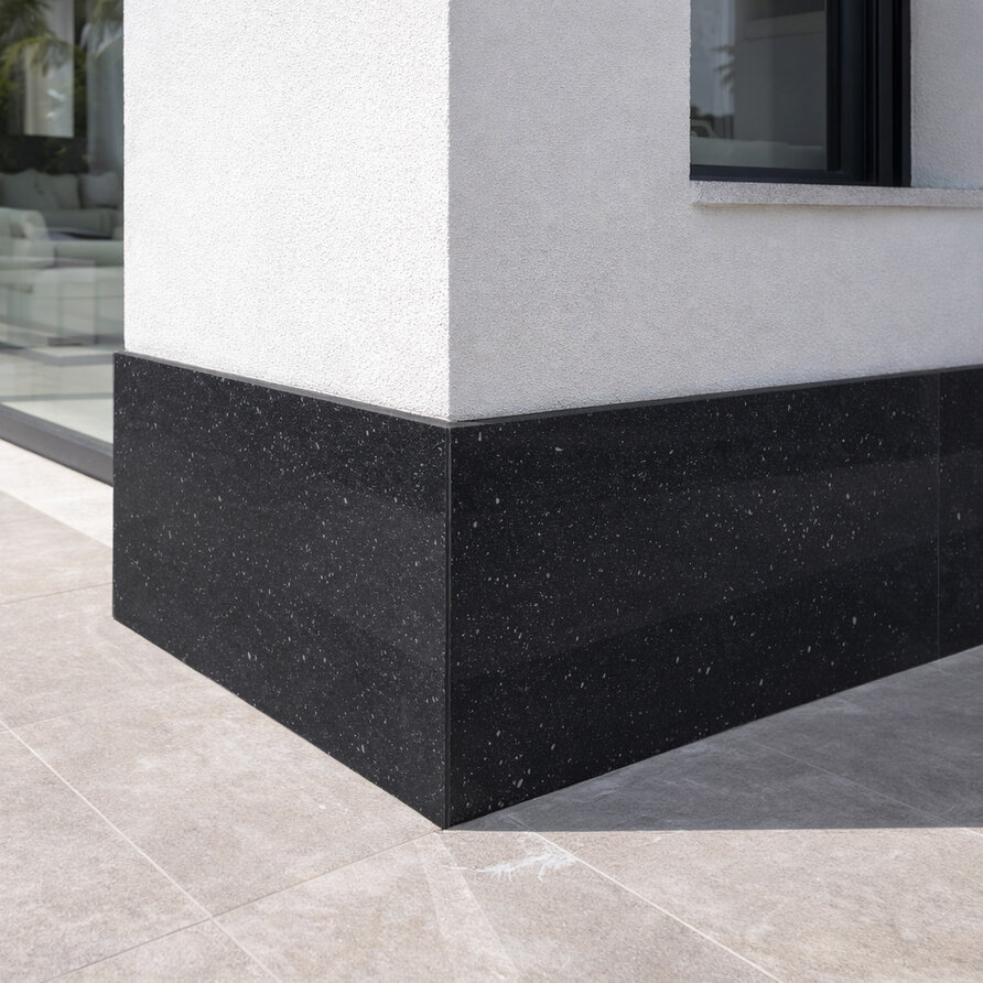 Gevelplint - hardsteen look donker - marmercomposiet - gepolijst (glans) - 2 cm dik - op maat - gevelbekleding van arduin imitatie marmer composiet