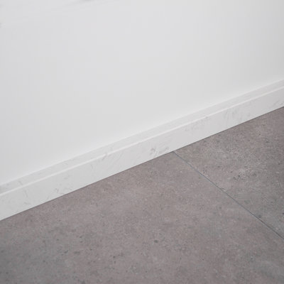 Een prachtige witte marmerlook composiet plint voor binnen 2 cm dik, met een stijlvolle look vervaardigd uit hoogwaardig gepolijst (glanzend) marmercomposiet. Een bijzondere witte kleur met grijze tekeningen, gebaseerd op het mooie Bianco Carrara marmer. Lees meer