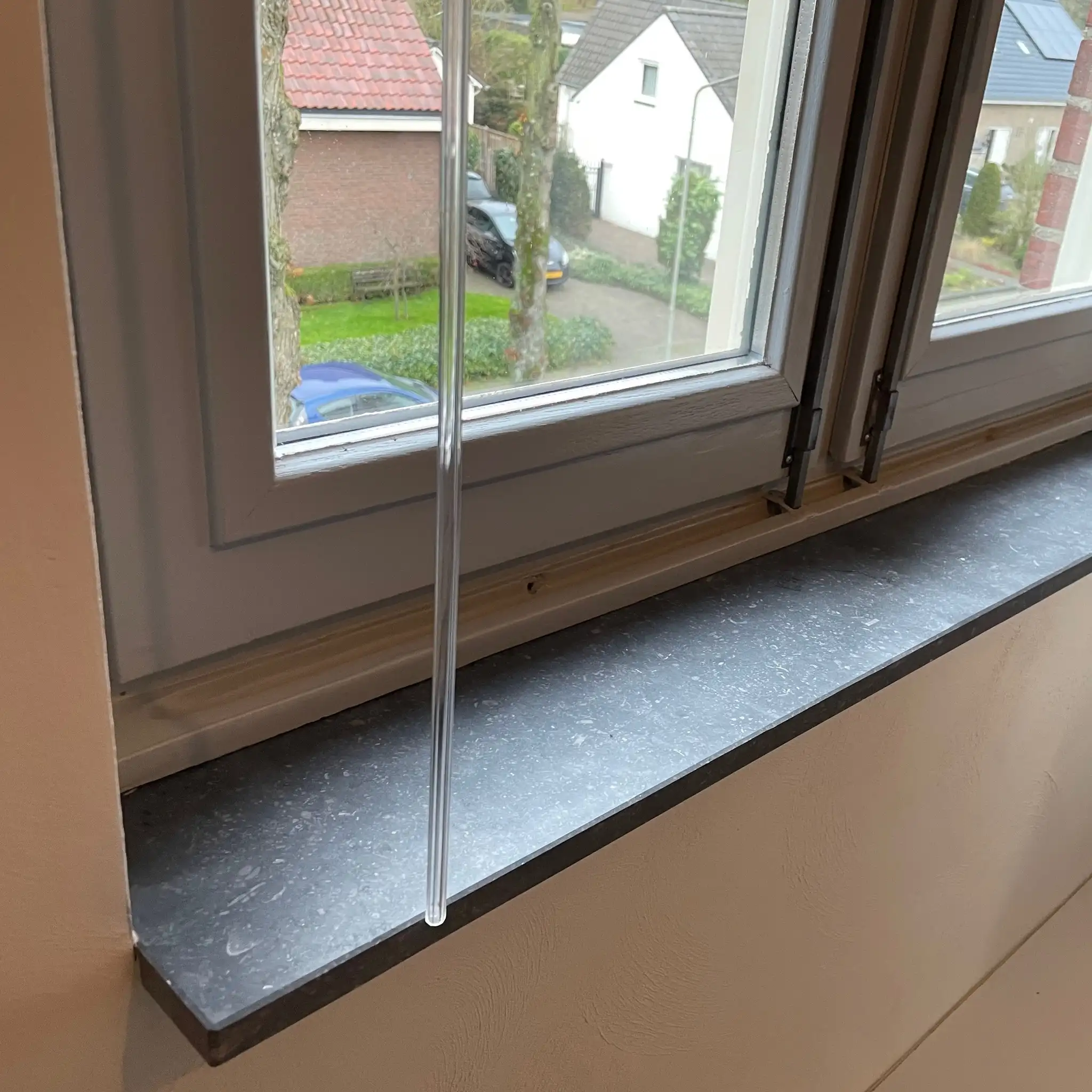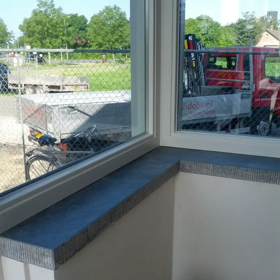 Een prachtige hardstenen vensterbank voor binnen - 3 cm dik & gezoet afgewerkt - met een levendige & sfeervolle blauwgrijze kleur (mat), vervaardigd uit de echte Belgische arduin uit Henegouwen! Lees meer