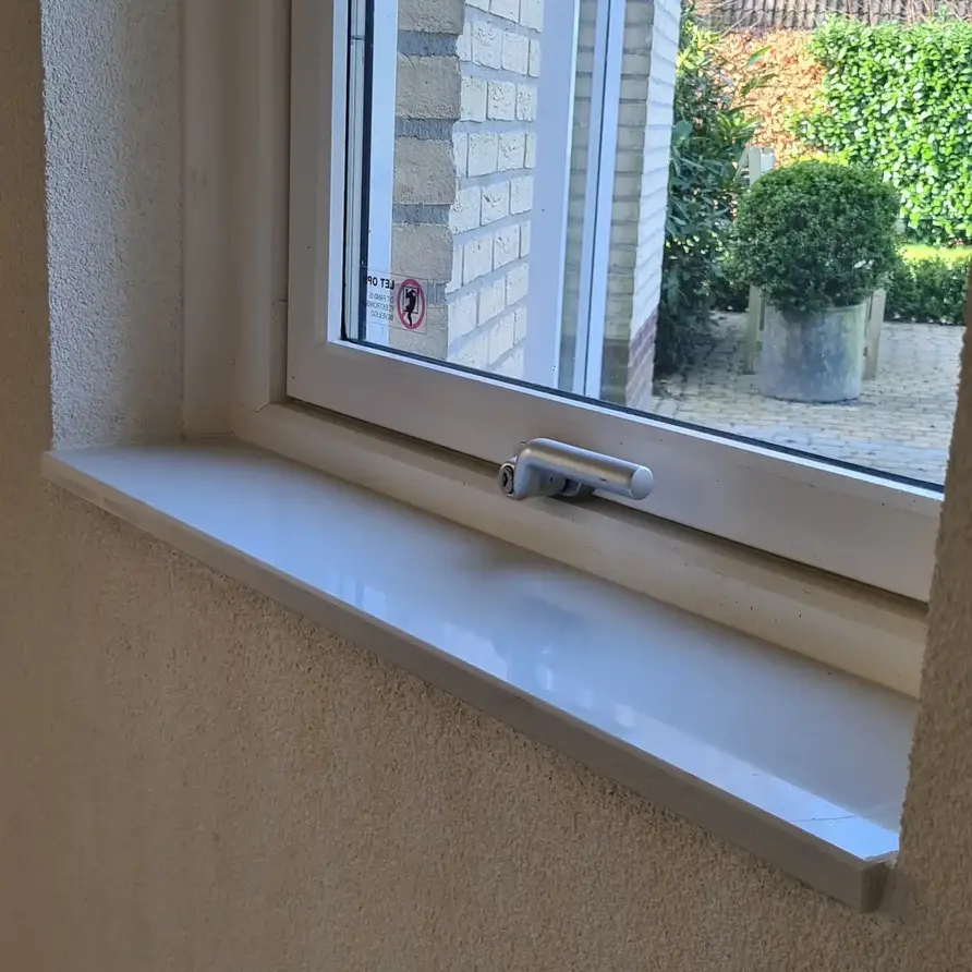 Deze composiet vensterbank wordt in eigen (natuursteen)zagerij voor u op maat gezaagd en afgewerkt, door ervaren vakmannen, met zorg & liefde voor het vak. Standaard wordt uw vensterbank recht gezaagd en worden de voorkant + beide zijkanten netjes afgewerkt, dat wilt zeggen gepolijst + afgewerkt met een facetrandje. Deze mooie prijsvoordelige composiet vensterbank is zeer toegankelijk en zal - met haar subtiele wittint en neutrale karakter - mooi passen binnen een grote diversiteit aan interieurstijlen
