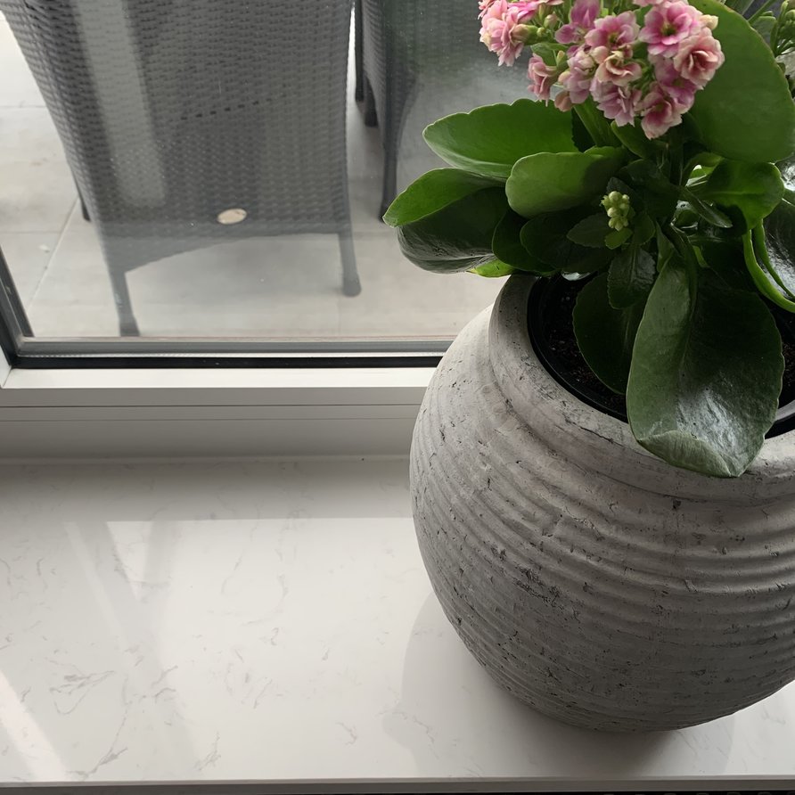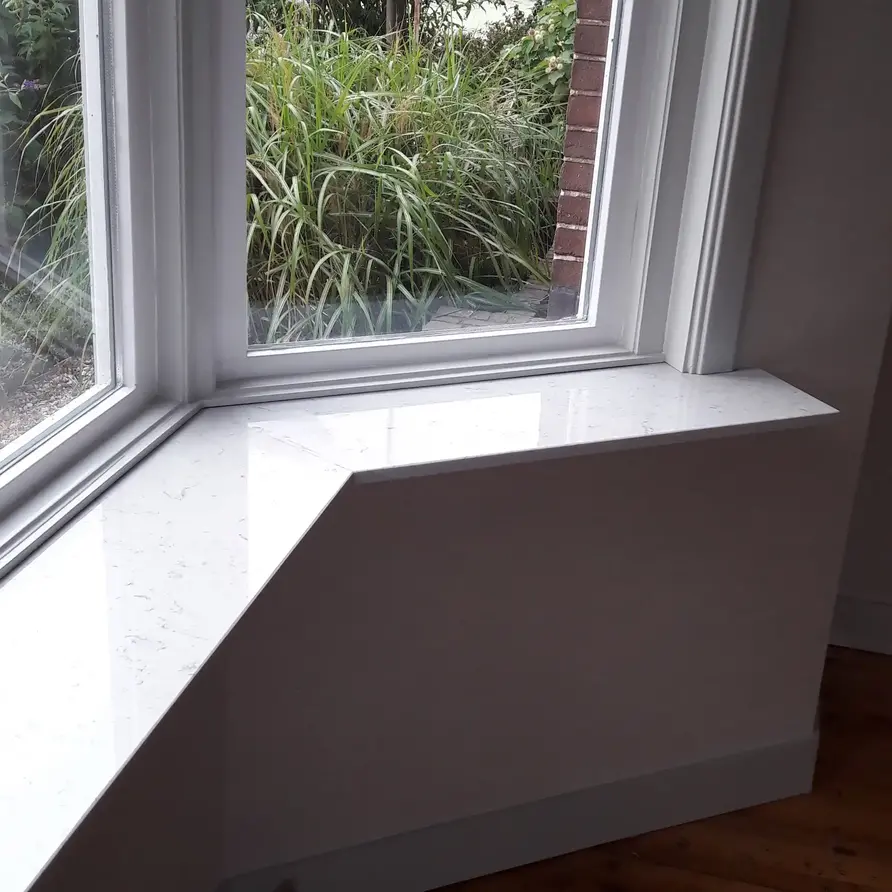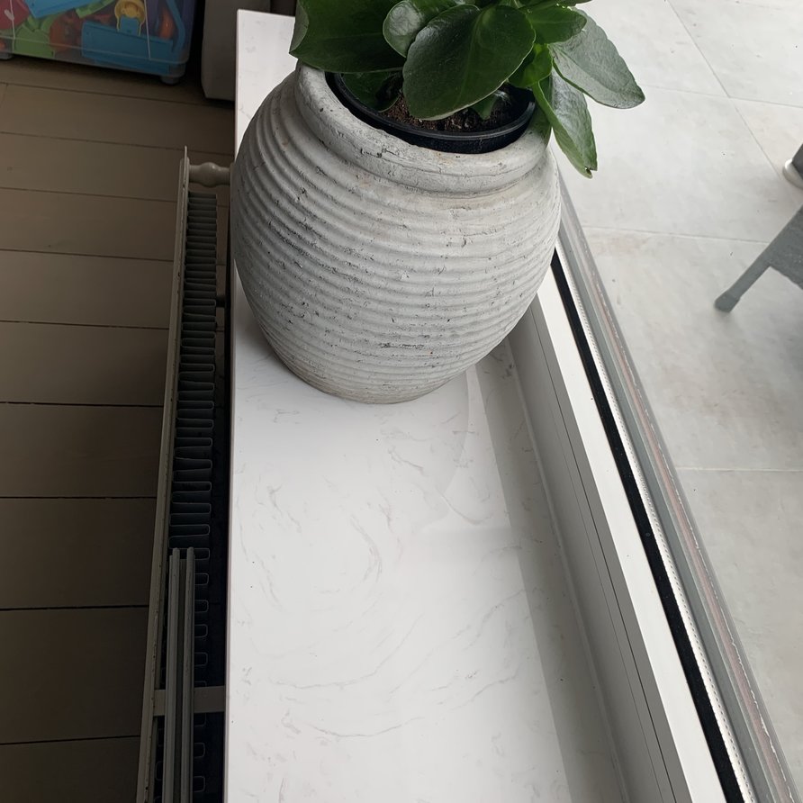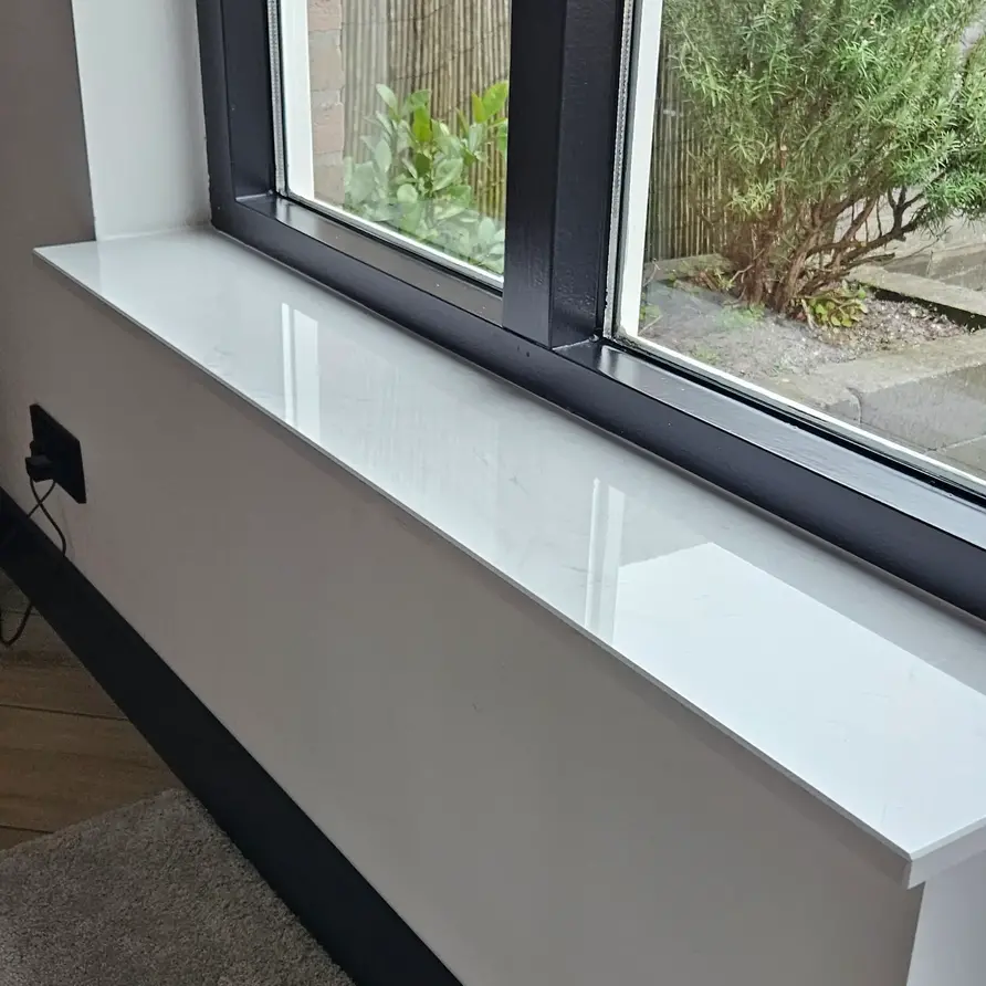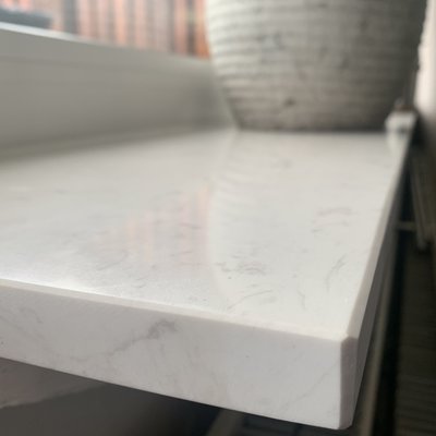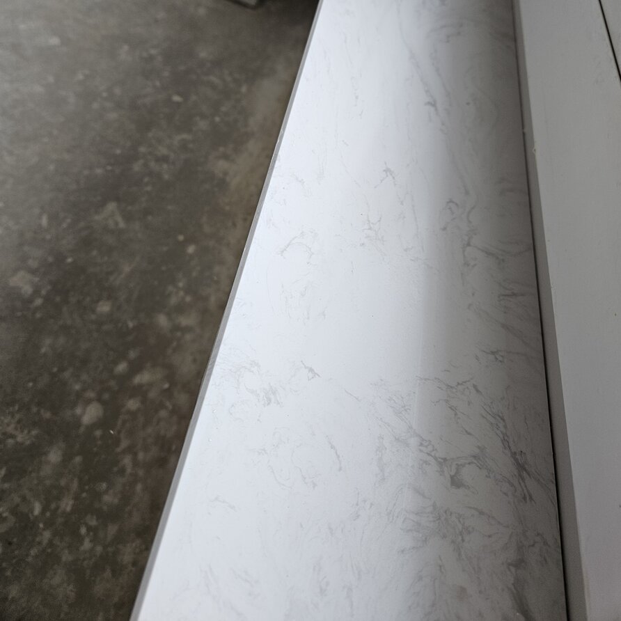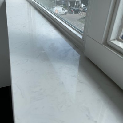 Een prachtige witte marmerlook composiet vensterbank voor binnen, met een stijlvolle look vervaardigd uit hoogwaardig gepolijst (glanzend) marmercomposiet. Een bijzondere witte basiskleur met grijze tekeningen, gebaseerd op het mooie Bianco Carrara marmer Lees meer
