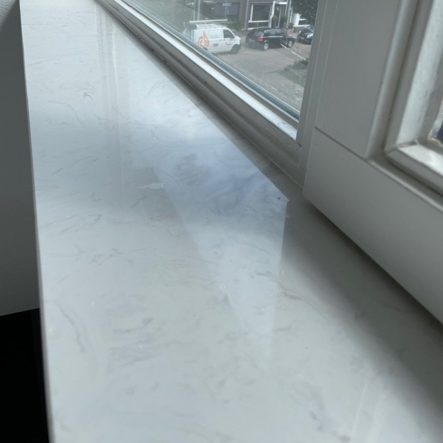 Vensterbank marmerlook wit - marmercomposiet - gepolijst (glans) - 2 cm dik - op maat - glanzende witte bianco carrara imitatie van marmer composiet