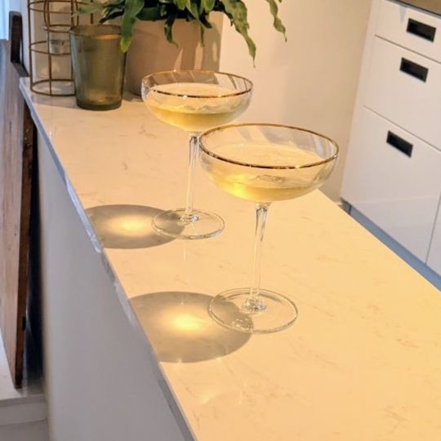 - Minder sterk & belastbaar t.o.v. kwartscomposiet & graniet