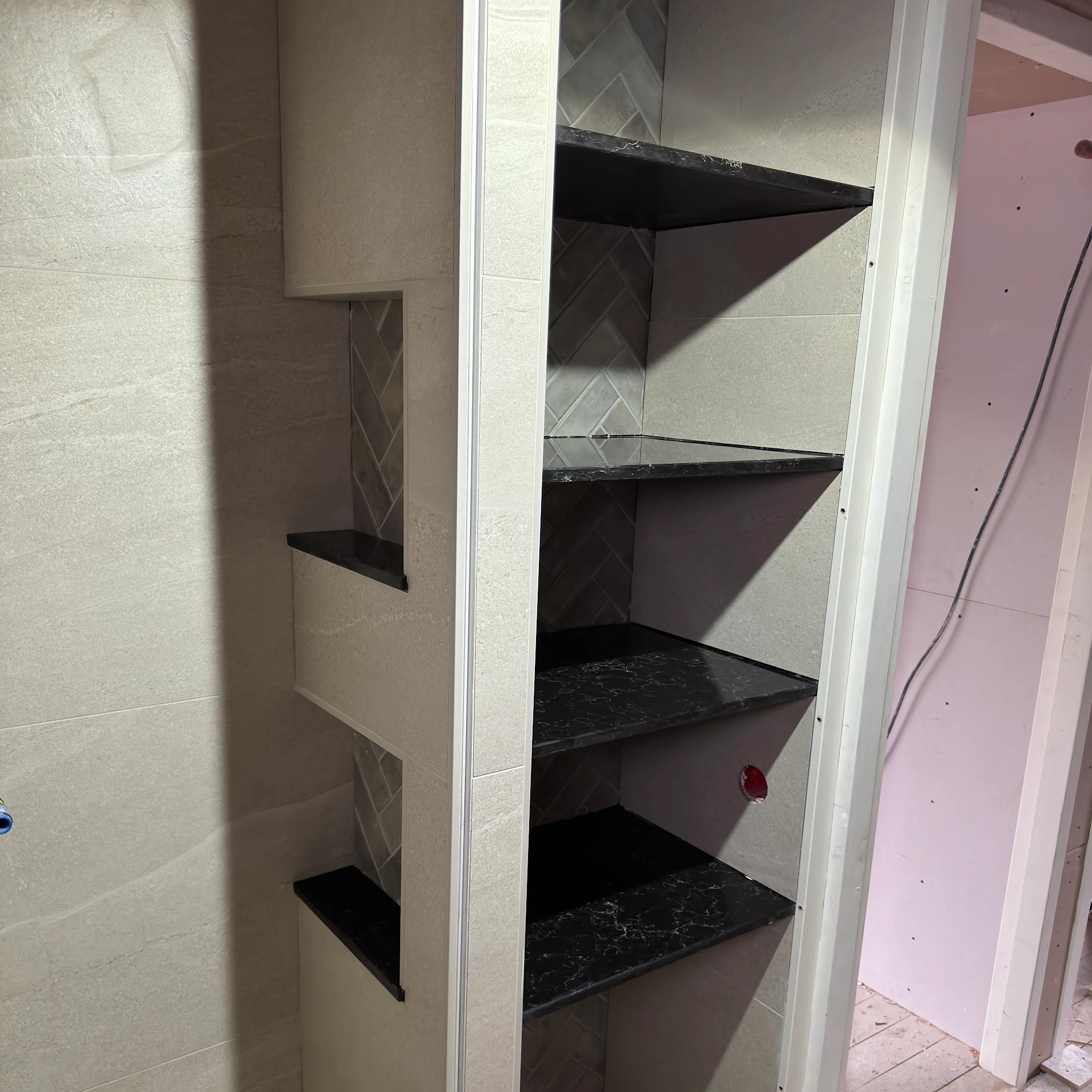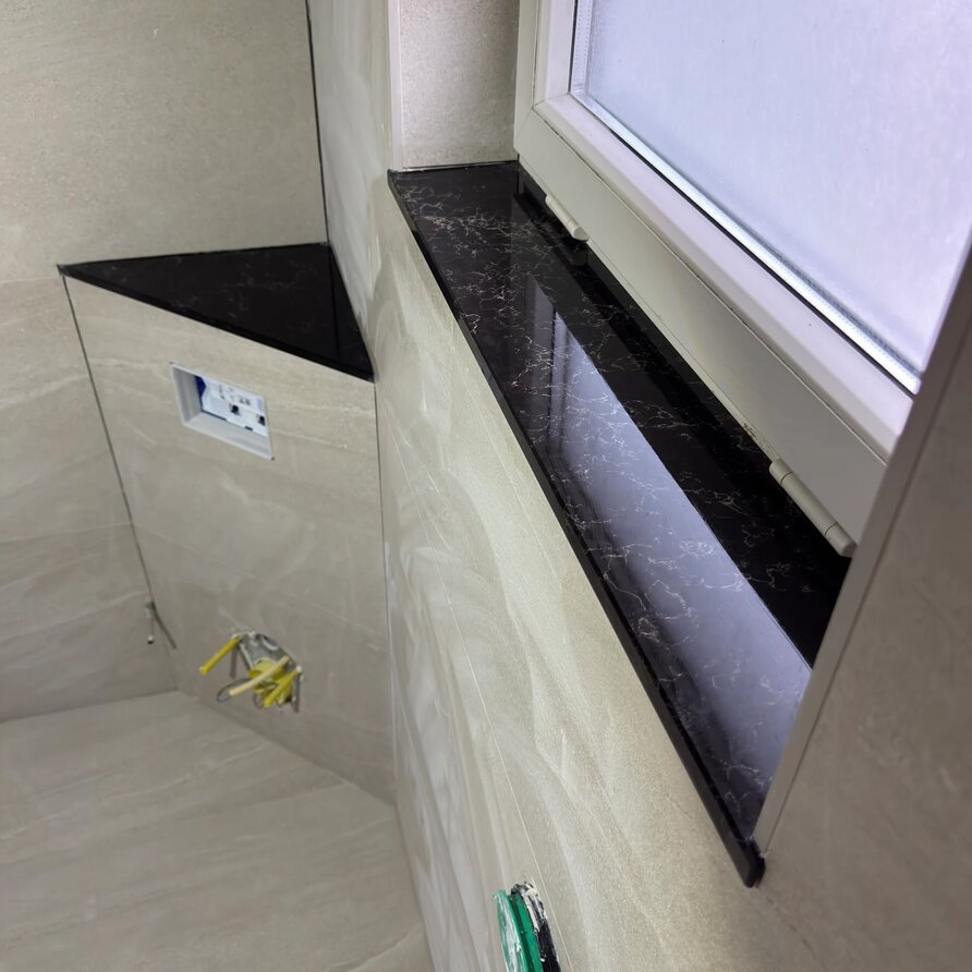 Een prachtige zwarte marmerlook composiet vensterbank voor binnen, met een moderne look vervaardigd uit hoogwaardig gepolijst (glanzend) kwartscomposiet. Een bijzondere zwarte basiskleur met subtiele marmer-look tekeningen. Lees meer