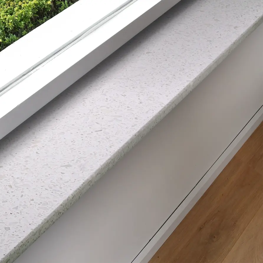 Vensterbank terrazzo wit - marmercomposiet - gepolijst (glans) - 2 cm dik - op maat - glanzende witte marmer composiet