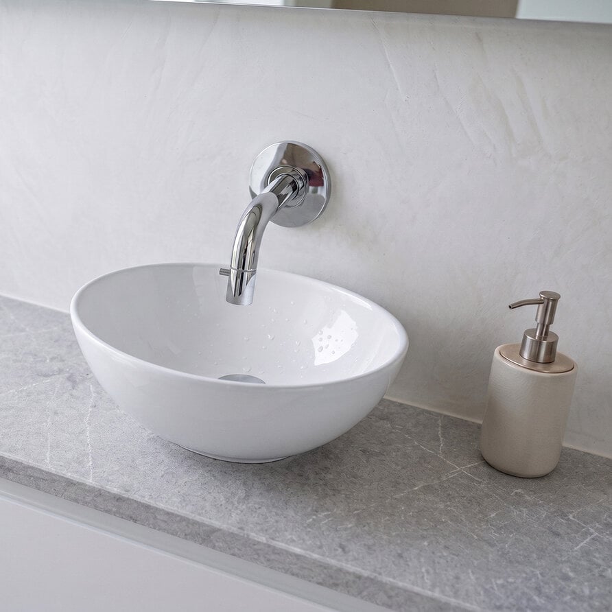 Dit wastafel blad is ideaal geschikt voor een opzet wasbak / waskom (of 2!) en wordt in eigen (natuursteen)zagerij voor u op maat gezaagd en afgewerkt, door ervaren vakmannen, met zorg & liefde voor het vak. Dit specifieke wastafelblad wordt normaal gesproken gebruikt als 'bovenblad', waarbij het als meubelblad op het wasmeubel / badmeubel komt te liggen. Standaard wordt uw wastafelblad recht gezaagd en worden de voorkant + beide zijkanten netjes afgewerkt, dat wilt zeggen gepolijst + afgewerkt met een facetrandje. Dit mooie topkwaliteit composiet wastafelblad combineert een toegankelijke (lichte) kleurtint met sfeervolle accenten en past in praktisch iedere interieurstijl; van klassiek tot modern.