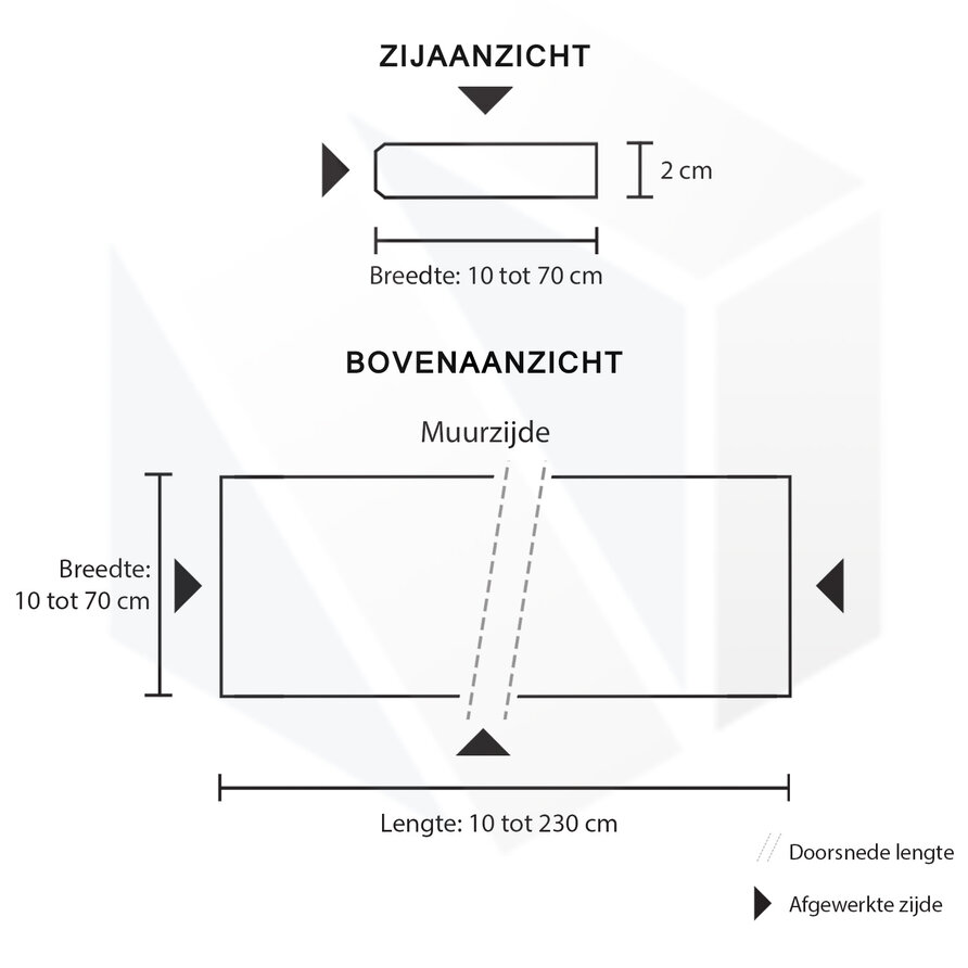 Afmeting | Dikte: 2 cm - Breedte: 10 - 70 cm - Lengte: 10 - 220 cm |